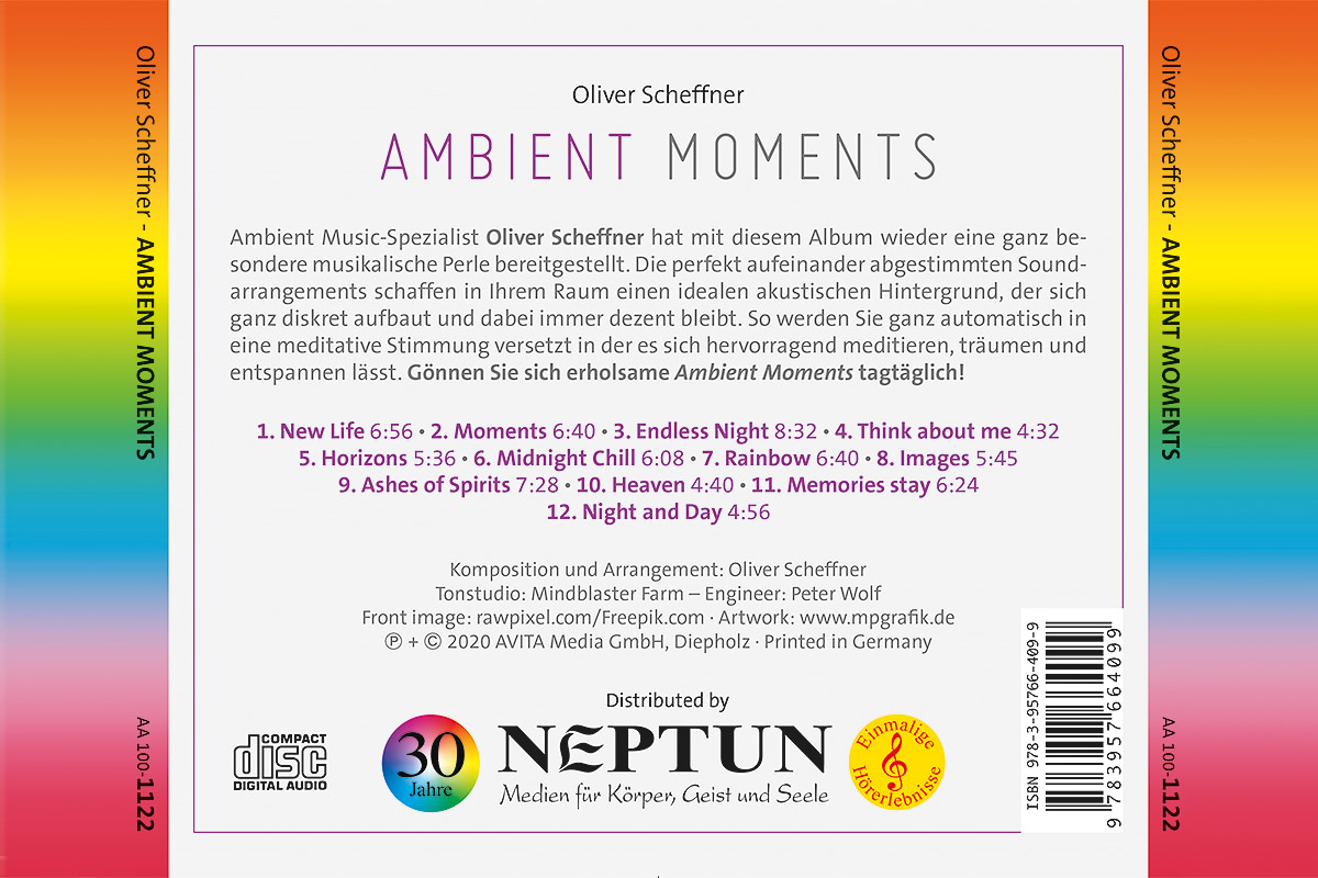 Ambient Music-Spezialist Oliver Scheffner hat mit diesem Album wieder eine ganz besondere musikalische Perle bereitgestellt. Die perfekt aufeinander abgestimmten Soundarrangements schaffen in Ihrem Raum einen idealen akustischen Hintergrund, der sich ganz diskret aufbaut und dabei immer dezent bleibt. So werden Sie ganz automatisch in eine meditative Stimmung versetzt in der es sich hervorragend meditieren, träumen und entspannen lässt. Gönnen Sie sich erholsame Ambient Moments tagtäglich!