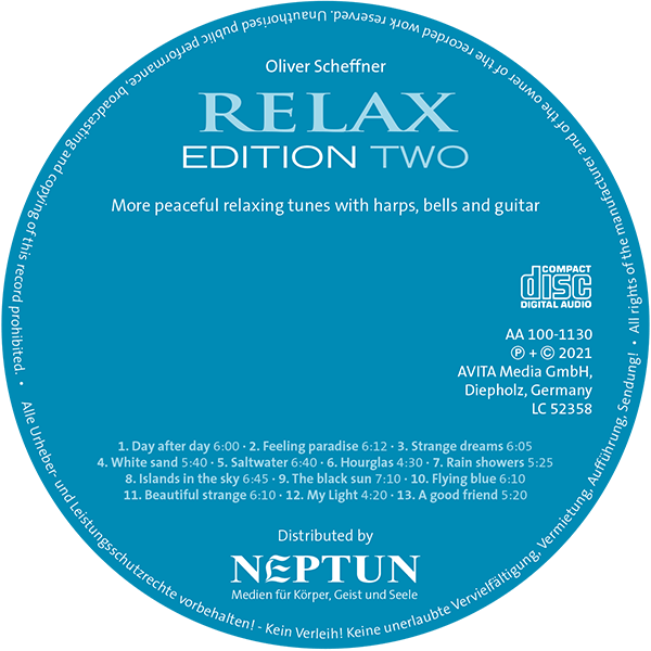 Mit der zweiten Ausgabe von RELAX setzt Oliver Scheffner, der Meister des Chillout Sound, die Reihe seiner speziellen Editionen fort. Auch dieses Album atmet voll und ganz den Geist inneren Friedens und sorgenfreier Entspanntheit.